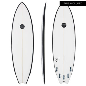 It’s every surfers dilemma, particularly when the waves are small or weak: You want to get in the water, you want to catch waves, you need the board to help you generate speed BUT you still want to be able to lay it on a rail and throw a little spray.The trend for super fat shortboards has created a lot of fun shapes for surfers of all levels, but unless you’re a WCT contender their fat tails can be hard to control properly rail to rail once you do get the board moving. The Maluku Flying Frog solves this problem by creating something of cut and shut; The front end is similar to a traditional egg or even minimal, but the tail is all rounded pin shortboard. You paddle in early and easy on that reassuring front end foam, pump through on your front foot on that wide, stable middle section and when you’re ready weight the back foot and put the board on rail exactly as you would with a shortboard – the rounded pin tail gives control through the turn in gutless waves or hold AND control in larger surf.